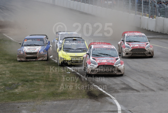 Rallycross SM Skövde 2015-05-10 Sebastian Eriksson tart starten i A-finalen, får senare punktering och blir trea